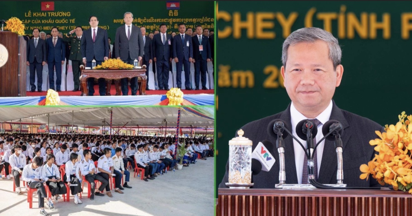 សម្តេចមហាបវរធិបតី ហ៊ុន ម៉ាណែត នាយករដ្ឋមន្រ្តី នៃព្រះរាជាណាចក្រកម្ពុជា បានថ្លែងក្នុងពិធីសម្ពោធដាក់ឱ្យដំណើរការជាផ្លូវការ “ច្រកទ្វារព្រំដែនអន្តរជាតិម៉ឺនជ័យ (ខេត្តព្រៃវែង កម្ពុជា) – តឹនណាម (ខេត្តតៃនិញ វៀត ...