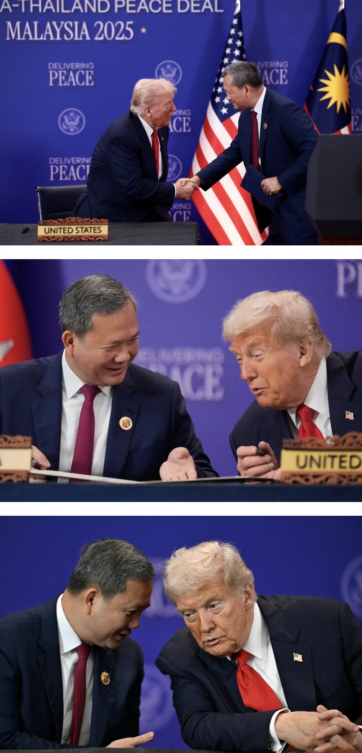 ឯកឧត្តម ហ៊ី សោភា ប្រធានក្រុមប្រឹក្សាធម្មនុញ្ញ និងមន្រ្តីរាជការនៃអគ្គលេខាធិការដ្ឋានក្រុមប្រឹក្សាធម្មនុញ្ញ សូមចូលរួមអបអរសាទរ ចំពោះកិច្ចខិតខំប្រឹងប្រែងរបស់រាជរដ្ឋាភិបាលនៃប្រទេសទាំងពីរ ក្រោមការដឹកនាំរបស់ សម្តេចមហាបវរធិបតី ហ៊ុន ម៉ាណែត នាយករដ្ឋមន្ត្រី នៃព្រះរាជាណាចក្រកម្ពុជា និងឯកឧត្តម អានុទីន ចាន់វីរៈគុល នាយករដ្ឋមន្ត្រី នៃព្រះរាជាណាចក្រថៃ និងតួនាទីស្នូលរបស់ ឯកឧត្តម អាន់វ៉ា អ៉ីប្រាហ៊ីម នាយករដ្ឋមន្ត្រីម៉ាឡេស៊ី និងជាប្រធានប្តូរវេនអាស៊ាន ជាពិសេសតួនាទីមិនអាចខ្វះបានរបស់ ឯកឧត្តម ដូណាល់ ត្រាំ ប្រធានាធិបតី សហរដ្ឋអាមេរិក។