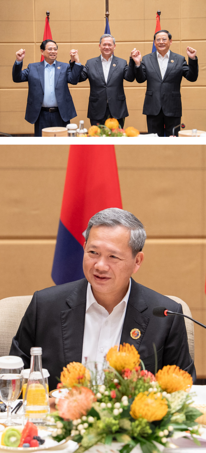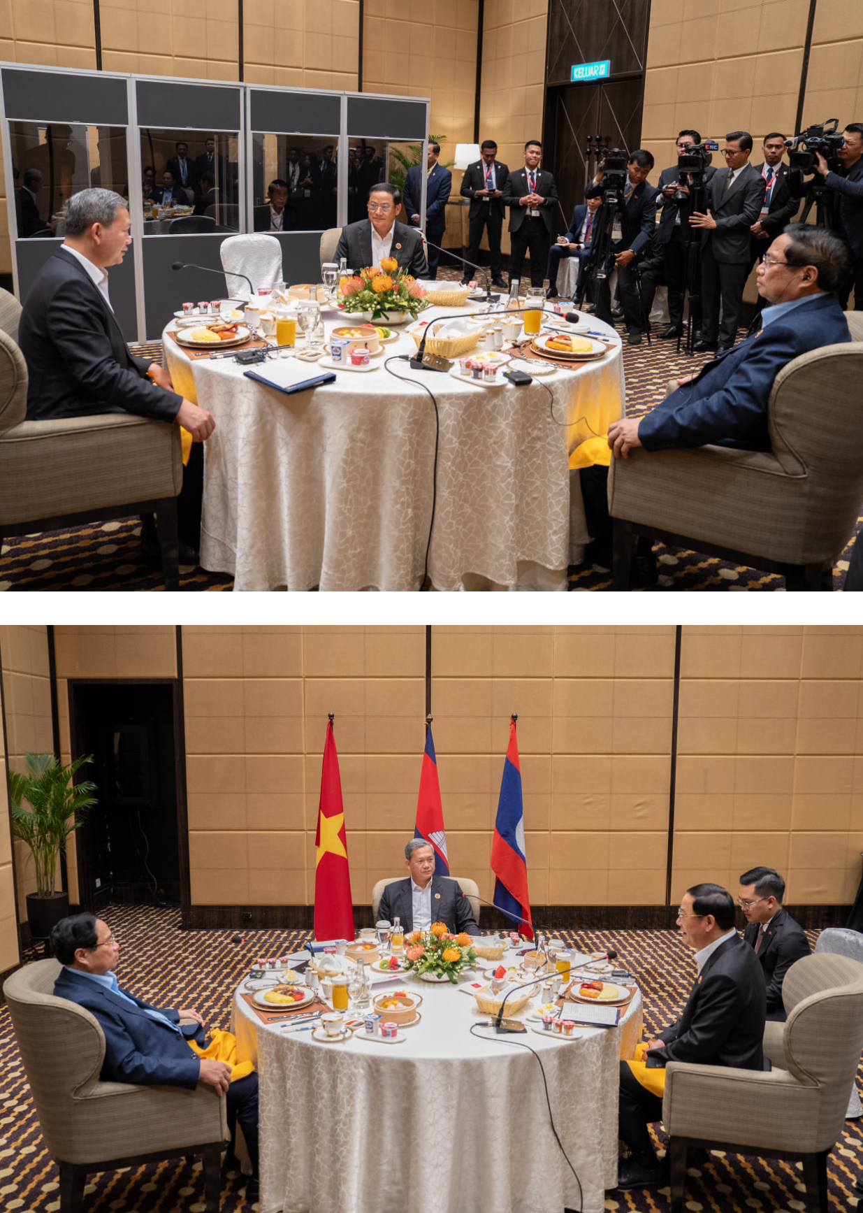 (កូឡាឡាំពួរ, ម៉ាឡេស៊ី)៖ នៅព្រឹកថ្ងៃចន្ទ ទី២៧ ខែតុលា ឆ្នាំ២០២៥នេះ សម្តេចមហាបវរធិបតី ហ៊ុន ម៉ាណែត នាយករដ្ឋមន្ត្រីកម្ពុជា, លោក ផាម មិញ ជិញ នាយករដ្ឋមន្ត្រីវៀតណាម និងលោក សនសៃ ស៊ីផាន់ដន នាយករដ្ឋមន្ត្រីឡាវ បានអញ្ជើញពិសារអាហារ និងពិភាក្សាការងារ នៅទីក្រុងកូឡាឡាំពួរ ប្រទេសម៉ាឡេស៊ី ទីដែលមេដឹកនាំប្រទេសភូមិផងរបងជាប់គ្នាទាំង៣អញ្ជើញចូលរួមកិច្ចប្រជុំកំពូលអាស៊ានលើកទី៤៧ និងកិច្ចប្រជុំកំពូលពាក់ព័ន្ធ។ជំនួបពិសាអាហារ និងពិភាក្សាការងាររវាងនាយករដ្ឋមន្ត្រីកម្ពុជា វៀតណាម និងឡាវ បានក្លាយទៅជាប្រពៃណីទៅហើយ ពោលរាល់ពេលជួបគ្នាក្នុងកិច្ចប្រជុំនានា មេដឹកនាំទាំង៣ តែងជួបពិសាអាហារ និងពិភាក្សាការងារបែបនេះ។ ជំនួបនេះ ធ្វើឡើងដើម្បីពង្រឹងចំណងមិត្តភាពរវាងគ្នាឱ្យកាន់ល្អប្រសើរថែមទៀត៕