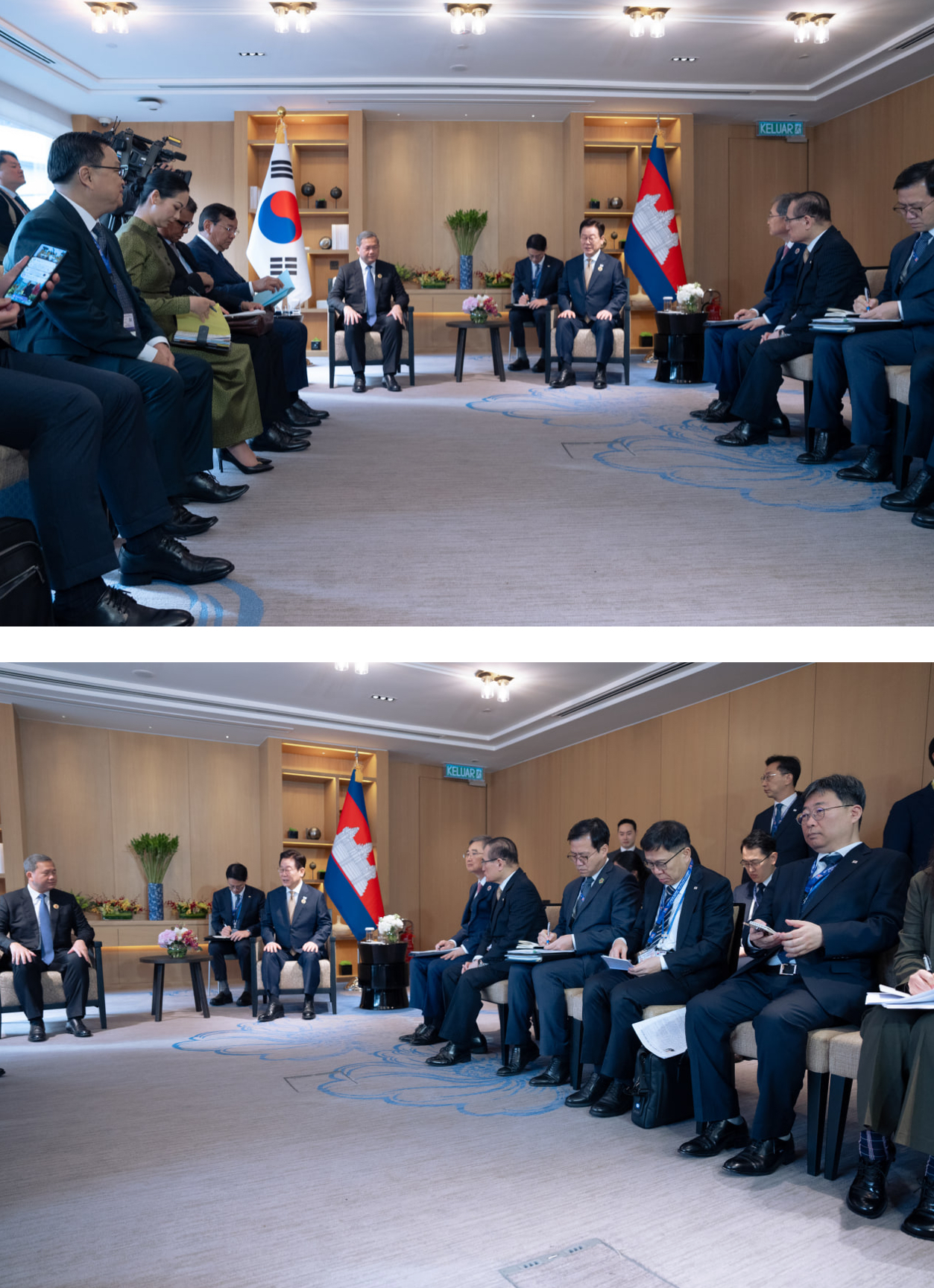 (កូឡាឡាំពួ)៖ សម្តេចបវរធិបតី ហ៊ុន ម៉ាណែត នាយករដ្ឋមន្ត្រីនៃកម្ពុជា នៅព្រឹកថ្ងៃទី២៧ ខែតុលា ឆ្នាំ២០២៥នេះ បានជួបពិភាក្សាការងារទ្វេភាគីជាមួយលោក Lee Jae Myung ប្រធានាធិបតីនៃសាធារណរដ្ឋកូរ៉េ ក្នុងឱកាសអញ្ជើញចូលរួមកិច្ចប្រជុំកំពូលអាស៊ានលើកទី៤៧ នៅទីក្រុងកូឡាឡាំពួ ប្រទេសម៉ាឡេស៉ី។សម្តេចបវរធិបតីបញ្ជាក់ថា ក្នុងជំនួបនោះ សម្តេច និងលោកប្រធានធិបតីកូរ៉េខាងត្បូង បានឯកភាពគ្នាក្នុងការវាយតម្លៃខ្ពស់ ចំពោះទំនាក់ទំនងកម្ពុជា-សាធារណរដ្ឋកូរ៉េ ដែលត្រូវបានភ្ជាប់ឡើងវិញនៅឆ្នាំ១៩៩៧ និងត្រូវបានដំឡើងកម្រិតដល់ភាពជាដៃគូយុទ្ធសាស្ត្រ នៅឆ្នាំ២០២៤ ហើយកាន់តែមានភាពរឹងមាំ និងស៊ីជម្រៅ ជាមួយនឹងកិច្ចសហប្រតិបត្តិការកាន់តែរីកចម្រើនគួរឱ្យកត់សម្គាល់ ស្ទើរគ្រប់វិស័យ។សម្តេចបវរធិបតី និងប្រធានធិបតីកូរ៉េខាងត្បូង ក៏បានពិភាក្សាគ្នា ពាក់ព័ន្ធនឹងការប្រយុទ្ធប្រឆាំងនឹងឧក្រិដ្ឋកម្មឆ្លងដែន ជាពិសេសការប្រយុទ្ធប្រឆាំងនឹងឆបោកតាមប្រព័ន្ធបច្ចេកវិទ្យា ដោយបានគូសបញ្ជាក់អំពីកិច្ចសហប្រតិបត្តិការជាច្រើនឆ្នាំកន្លងមក រវាងអាជ្ញាធរកម្ពុជា និងអាជ្ញាធរកូរ៉េ ហើយដែលបានសម្រេចនូវលទ្ធផលល្អជាផ្លែផ្កាជាច្រើនរួចមកហើយ។ក្នុងពេលជាមួយគ្នា, កម្ពុជា និងសាធារណរដ្ឋកូរ៉េ នឹងបន្តពង្រឹងកិច្ចសហប្រតិបត្តិការរួមគ្នាដើម្បីបង្ការ, ទប់ស្កាត់និងប្រយុទ្ធប្រឆាំងនឹងបទឧក្រិដ្ឋនា នាដែលពាក់ព័ន្ធជាមួយជនជាតិកូរ៉េនៅកម្ពុជា ឱ្យកាន់មានប្រសិទ្ធភាពខ្ពស់ សំដៅចូលរួមចំណែកថែរក្សា, ការពារសន្តិសុខ, សណ្តាប់ធ្នាប់សាធារណៈ និងសុវត្ថិភាពសង្គម ។ជាក់ស្តែង ក្រុមការងារចំពោះកិច្ចចម្រុះរវាងកម្ពុជានិងកូរ៉េមួយ នឹងត្រូវបង្កើតនៅក្នុងអំឡុងខែវិច្ឆិការនេះ ដើម្បីបង្កើនកិច្ចសហប្រតិបត្តិការរវាងសមត្ថកិច្ចនៃប្រទេសទាំងពីរ ក្នុងការប្រយុទ្ធប្រឆាំងនឹងបទឧក្រិដ្ឋនានាដែលពាក់ព័ន្ធជាមួយជនជាតិកូរ៉េនៅកម្ពុជា រួមទាំងការឆបោកតាមប្រព័ន្ធបច្ចេកវិទ្យា។សម្តេចបវរធិបតី និងប្រធានធិបតីកូរ៉េខាងត្បូង ក៏បានឯកភាពគ្នា ក្នុងការរួមគ្នាផ្សព្វផ្សាយអោយបានទូលំទូលាយនូវពត៌មានអំពីលទ្ធផលវិជ្ជមាននៃកិច្ចសហប្រតិបត្តិការរវាងភាគីយើងទាំងពីរ៕