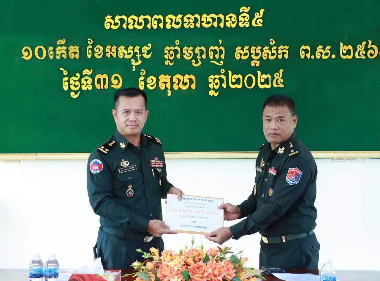(បាត់ដំបង)៖ ព្រឹកថ្ងៃសុក្រ ១០កើត ខែកត្តិក ឆ្នាំម្សាញ់ សប្តស័ក ព.ស. ២៥៦៩ ត្រូវនឹង ថ្ងៃទី៣១ ខែតុលា ឆ្នាំ២០២៥ ឧត្តមសេនីយ៍ទោ សេង ធារិន មេបញ្ជាការរង នាយសេនាធិការ យោធភូមិភាគទី៥ បាននាំយកអំណោយដ៏ថ្លៃថ្លារបស់ សម្តេចមហាបវរធិបតី ហ៊ុន ម៉ាណែត នាយករដ្ឋមន្រ្តីនៃព្រះរាជាណាចក្រកម្ពុជា និងលោកជំទាវបណ្ឌិត ពេជ ចន្ទមុន្នី រួមមាន អង្ករ គ្រឿងឧបភោគបរិភោគ និង ថវិកា សម្រាប់ទ្រទ្រង់ការងារសាលា យោធាចារ្យ និង គ្រូគ្រប់គ្រង នៅសាលាពលទាហានទី៥ យោធភូមិភាគទី៥។ការឧបត្ថម្ភនេះ ជាការយកចិត្តទុកដាក់របស់ សម្តេចមហាបវរធិបតី ហ៊ុន ម៉ាណែត នាយករដ្ឋមន្រ្តី នៃព្រះរាជាណាចក្រកម្ពុជា និងលោកជំទាវបណ្ឌិត ពេជ ចន្ទមុន្នី ដល់ខឿនការពារជាតិដែលជាថ្នាលដ៏សំខាន់ក្នុងការជួយអភិវឌ្ឍបណ្តុះបណ្តាល និងលើកកម្ពស់សមត្ថភាពយោធិន នៃកងយោធពលខេមរភូមិន្ទ។លោកឧត្ដមសេនីយ៍ត្រី ឌុច ដួន នាយកសាលាពលទាហានទី៥ ព្រមទាំងនាយទាហាន នាយទាហានរង ពលទាហានទាំងអស់ សូមគោរពថ្លែងអំណរគុណយ៉ាងជ្រាលជ្រៅ និងសូមគោរពជូនពរ សម្ដេចមហាបវរធិបតី នាយករដ្ឋមន្រ្តី នៃព្រះរាជាណាចក្រកម្ពុជា និងលោកជំទាវបណ្ឌិត ព្រមទាំងមេបញ្ជាការរង នាយសេនាធិការ យោធភូមិភាគទី៥ សូមមានសុខភាពល្អ បវរសួស្តី ជ័យជំនះគ្រប់ភារកិច្ច និងសូមសមប្រកបដោយពុទ្ធពរទាំងបួនប្រការគឺ អាយុ វណ្ណៈ សុខៈ ពលៈ កុំបីឃ្លៀងឃ្លាតឡើយ៕