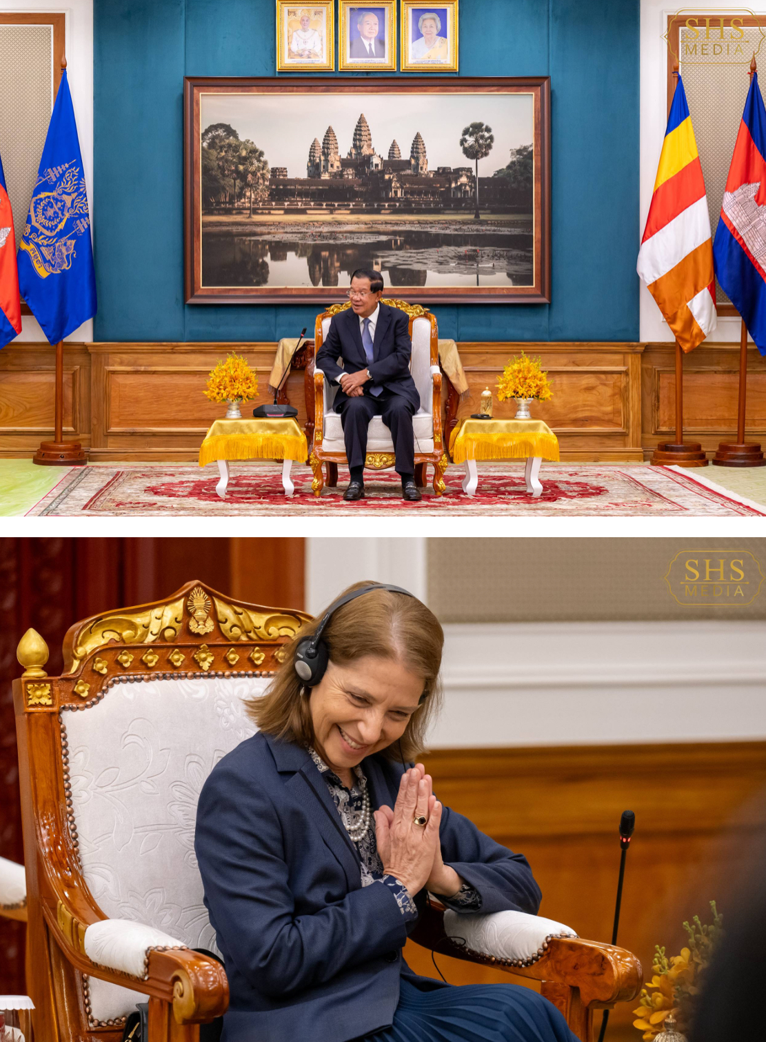 ភ្នំពេញ៖ សម្ដេចអគ្គមហាសេនាបតីតេជោ ហ៊ុន សែន ប្រមុខរដ្ឋស្ដីទី នៃព្រះរាជាណាចក្រកម្ពុជា អនុញ្ញាតឱ្យលោកជំទាវ Vivian Loss Sanmartin ឯកអគ្គរដ្ឋទូតសាធារណរដ្ឋសហព័ន្ធប្រេស៊ីល តែងតាំងថ្មីប្រចាំនៅព្រះរាជាណាចក្រកម្ពុជា និងស្វាមី ចូលជូនសាតាំង និងពិភាក្សាការងារ នៅវិមានព្រឹទ្ធសភា រាជធានីភ្នំពេញ នាព្រឹកថ្ងៃទី២៥ ខែកញ្ញា ឆ្នាំ២០២៥។