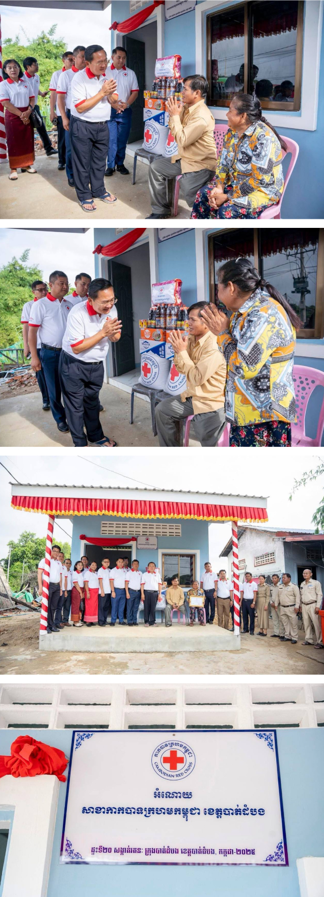 (បាត់ដំបង)៖ នៅព្រឹកថ្ងៃទី៤ ខែកញ្ញា ឆ្នាំ២០២៥នេះ ឯកឧត្តម សុខ លូ អភិបាលខេត្ត និងជាប្រធានគណៈកម្មាធិការសាខាកាកបាទក្រហមកម្ពុជាខេត្តបាត់ដំបង អមដំណើរដោយ ឯកឧត្តម លោកជំទាវ លោក លោកស្រី គណៈកម្មាធិការសាខា អនុសាខាក្រុង ក្រុមកាកបាទក្រហមសង្កាត់ អ្នកស្មគ្រ័ចិត្តនិងយុវជនកាកបាទក្រហមកម្ពុជា បានអញ្ជើញចុះប្រគល់ផ្ទះមនុស្សធម៌ ១ខ្នង លេខរៀងទី២០ ជាអំណោយរបស់សាខាកាកបាទក្រហមកម្ពុជាខេត្ត ជូនដល់ក្រុមគ្រួសារ លោក អេង ម៉ាប់ អាយុ៦៣ឆ្នាំ មានពិការភាព និងជាអតីតយុទ្ធដែលមានជីវភាពក្រីក្រ និងបានរងគ្រោះដោយអគ្គិភ័យកន្លងទៅ ស្ថិតនៅភូមិរំចេក២ ព្រមទាំងផ្តល់អំណោយជូនប្រជាពលរដ្ឋងាយរងគ្រោះបំផុត ចាស់ជរា ជនមានពិការភាព គ្រួសារ ទីទ័លក្រចំនួន៥០គ្រួសារមកពីភូមិចំនួន៧ភូមិ ក្នុងសង្កាត់រតនៈ ក្រុងបាត់ដំបង ខេត្តបាត់ដំបង។លោក លាង វាសនា អភិបាលក្រុង និងជាប្រធានគណៈកម្មាធិការអនុសាខាក្រុងបាត់ដំបងបានឲ្យដឹងថា ក្រុមគ្រួសារលោក អេង ម៉ាប់ អាយុ៦៣ឆ្នាំ ជាជនមានពិការភាព និងអតីតយុទ្ធ បច្ចុប្បន្នជាសន្តិសុខឯកជន ប្រពន្ធឈ្មោះ ឆាយ ផារី អាយុ ៥៥ឆ្នាំ មុខរបមេផ្ទះ មានកូនចំនួន៤នាក់ គ្រួសារមានជីវភាពក្រីក្រលំបាក និងរងគ្រោះដោយអគ្គីភ័យ កាលពីថ្ងៃទី០២ ខែឧសភា ឆ្នាំ២០២៥ វេលាម៉ោងជាង១៩៖៥៥នាទីយប់ បណ្តាលមកពីឆ្លងចរន្តអគ្គិសនីស្ថិតនៅក្រុមទី ៧ ភូមិរំចេក២ សង្កាត់រតនៈ ក្រុងបាត់ដំបង ភ្លាមៗនោះអនុសាខាកាកបាទក្រហមកម្ពុជាក្រុង និងសប្បុរសជនក៏បាននាំយកអំណោយមនុស្សធម៌មកផ្តល់ជូនគ្រួសាររងគ្រោះជាបន្តបន្ទាប់ផងដែរ។ ដោយមើលឃើញពីកាលំបាក និងដោយក្តីអាណិតអាសូជាពនពេក ពីសំណាក់ ឯកឧត្តមប្រធានគណៈកម្មាធិការសាខាបានសម្រេចផ្តល់ផ្ទះថ្មី១ខ្នង និងបានធ្វើពិធីប្រគល់ទទួលនាពេលនេះ។ក្នុងនាមកាកបាទក្រហមកម្ពុជា ដែលមាន សម្តេចព្រះមហាក្សត្រី នរោត្តម មុនិនាថ សីហនុ ព្រះវររាជមាតាជាតិខ្មែរ ជាព្រះប្រធានកិត្តិយស និងសម្តេចកិត្តិព្រឹទ្ធបណ្ឌិត ប៊ុន រ៉ានី ហ៊ុនសែន ជាប្រធាន, ឯកឧត្តម សុខ លូ ប្រធានគណៈកម្មាធិការ សាខាកាកបាទក្រហមកម្ពុជាខេត្ត បានសម្តែងនូវក្តីសោមនស្សរីករាយ និងការផ្តាំផ្ញើសួរសុខទុក្ខ ក្តីនឹករលឹក អាណិត អាសូនិងស្រឡាញ់ចំពោះក្រុមគ្រួសារ លោក អេង ម៉ាប់ ក៏ដូចជាបងប្អូនប្រជាពលរដ្ឋទាំងអស់ ។លើសពីនេះទៅទៀតឯកឧត្តម បានបញ្ជាក់ថា «បើទោះបីជាបងប្អូនមានជីវភាពលំបាកយ៉ាងណាក៏ដោយ ក៏សូមបងប្អូនខិតខំជម្នះការលំបាក តស៊ូ ជំរុញដល់កូនៗរបស់ខ្លួនឱ្យទៅសាលារៀន ទទួលបានការអប់រំ មានចំណេះដឹងខ្ពង់ខ្ពស់ ដើម្បីកាត់បន្ថយបាននូវភាពក្រីក្រ» ព្រមទាំងចូលរួមអប់រំណែនាំដល់កូនចៅឱ្យជៀសឆ្ងាយពីគ្រឿងញៀននិងចូលរួមគោរពច្បាប់ចរាចរណ៍ទាំងអស់គ្នាផងដែរ។ជាមួយគ្