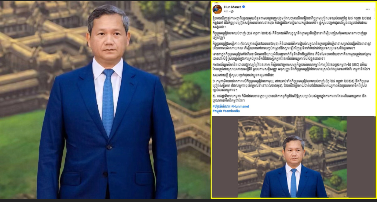 ភ្នំពេញ៖ តាមសំណេរនៅលើបណ្តាញសង្គម នៅថ្ងៃទី១៩ ខែតុលា ឆ្នាំ២០២៥នេះ សម្តេចធិបតី ហ៊ុន ម៉ាណែត នាយករដ្ឋមន្រ្តីនៃកម្ពុជា បានលើកឡើងឆ្លើយតបនឹង ការអត្ថាធិប្បាយមួយចំនួនតាមបណ្តាញសង្គម ដែលបានលើកឡើងថា កិច្ចព្រមព្រៀង អានបន្ត