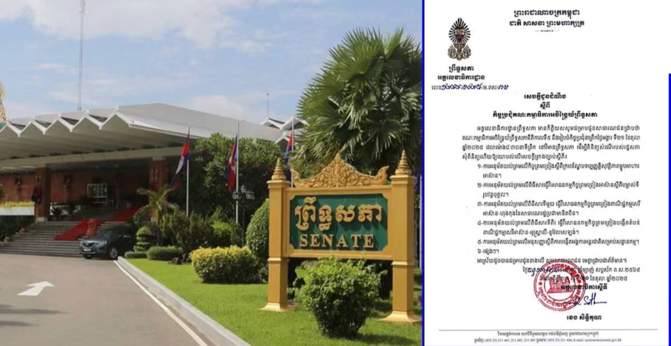 ភ្នំពេញ៖ នៅព្រឹកថ្ងៃទី២១ ខែតុលា ឆ្នាំ២០២៥ស្អែកនេះ គណៈកម្មាធិការអចិន្ត្រៃយ៍ព្រឹទ្ធសភា នីតិកាលទី៥ នឹងរៀបចំកិច្ចប្រជុំ នៅវិមានព្រឹទ្ធសភា ដើម្បីពិនិត្យសំណើរបស់រដ្ឋសភា និងសុំពិនិត្យហើយឱ្យយោបល់ លើសេចក្តីព្រ អានបន្ត