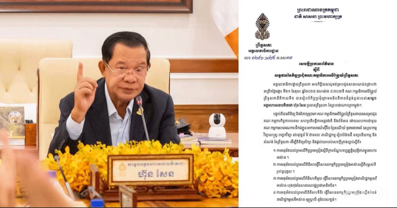 ភ្នំពេញ៖ នៅព្រឹកថ្ងៃទី២១ ខែតុលា ឆ្នាំ២០២៥ សម្តេចអគ្គមហាសេនាបតីតេជោ ហ៊ុន សែន ប្រធានព្រឹទ្ធសភានៃព្រះរាជាណាចក្រកម្ពុជា អញ្ជើញដឹកនាំកិច្ចប្រជុំគណៈកម្មាធិការអចិន្ត្រៃយ៍ព្រឹទ្ធសភា ដើម្បីពិនិត្យសំណើរបស់រដ្ឋស អានបន្ត