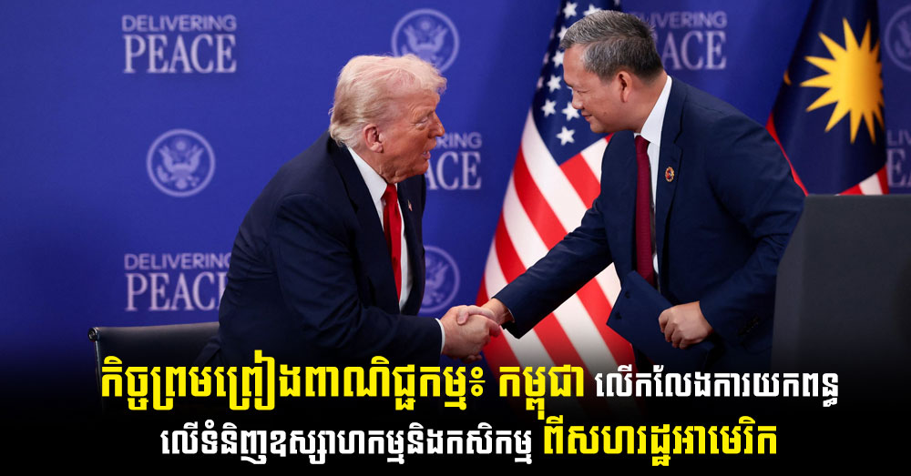 កិច្ចព្រមព្រៀងពាណិជ្ជកម្ម៖ កម្ពុជា លើកលែងការយកពន្ធលើទំនិញឧស្សាហកម្មនិងកសិកម្ម ពីសហរដ្ឋអាមេរិក