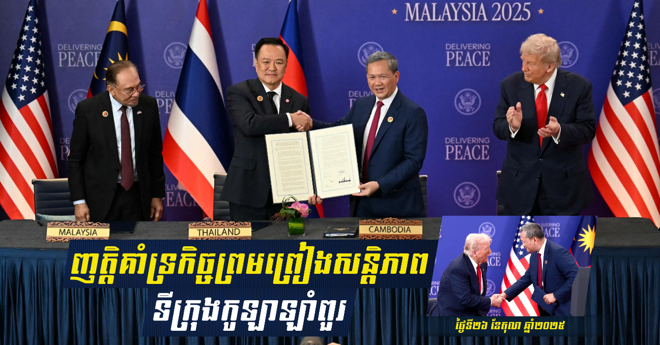 ក្រសួងការបរទេស ចេញសេចក្តីប្រកាសព័ត៌មានអំពីការចុះហត្ថលេខាលើសេចក្តីថ្លែងការណ៍រួម ដោយនាយករដ្ឋមន្ត្រីកម្ពុជា និងនាយករដ្ឋមន្ត្រីថៃ នៅទីក្រុងគូឡាឡាំពួ ដោយមានប្រធានាធិបតីអាមេរិក និងប្រធានអាស៊ានជាសាក្សី