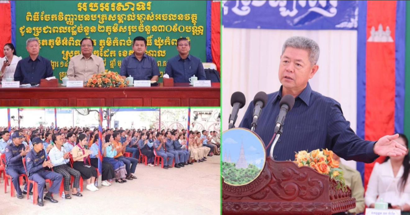 ភ្នំពេញ៖ ការថ្លែងអំពាវនាវនេះ ធ្វើឡើងនាព្រឹកថ្ងៃទី២១ ខែតុលា ឆ្នាំ២០២៥ ក្នុងពិធីចែកវិញ្ញាបនបត្រសម្គាល់ម្ចាស់អចលនវត្ថុជូនប្រជាពលរដ្ឋចំនួន ២ភូមិ សរុបចំនួន ៣.០៩០បណ្ណ ស្ថិតនៅភូមិអំពិលទឹក និងភូមិកំពង់ពោធិ៍ ឃ អានបន្ត