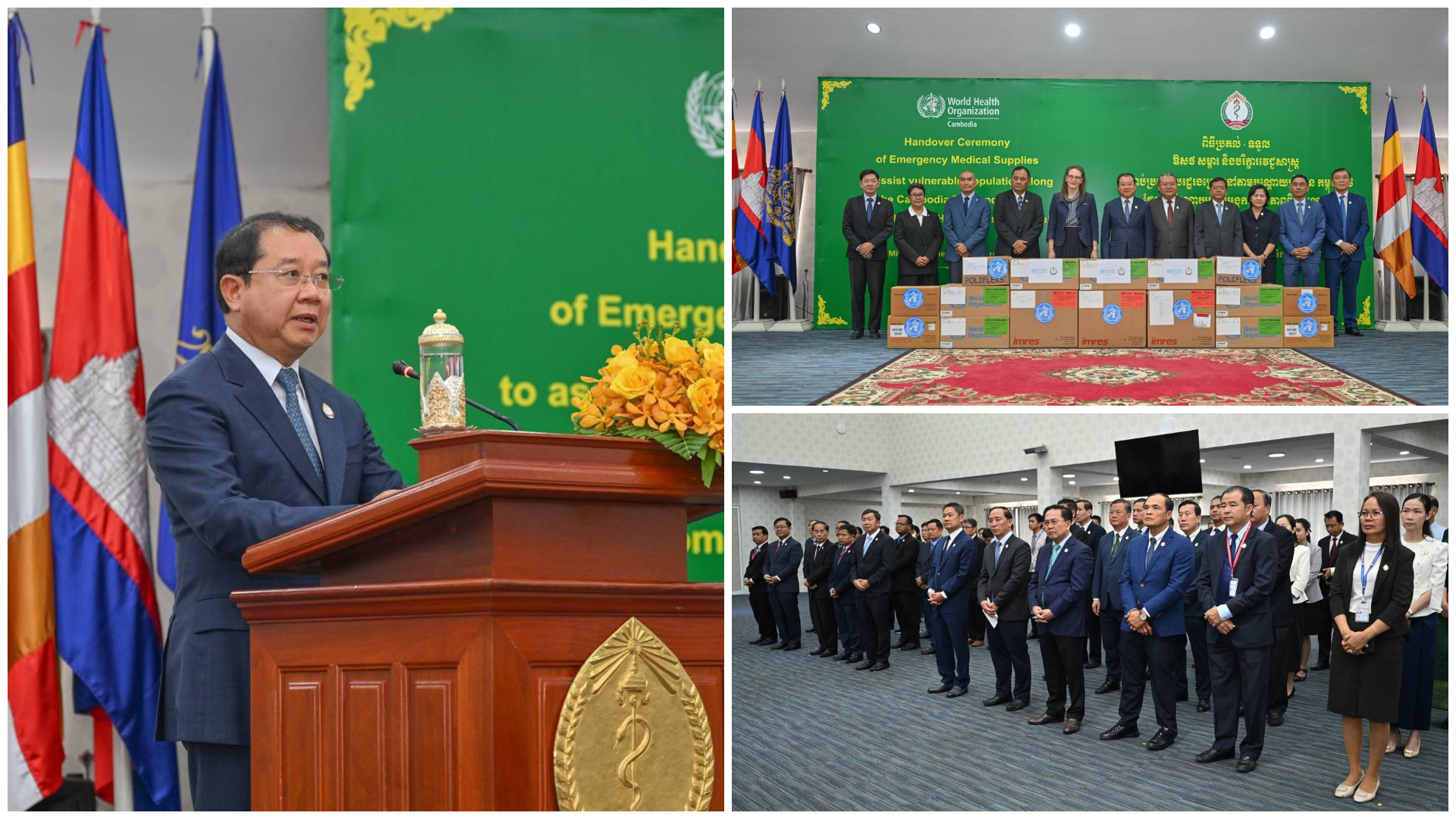 ក្រសួងសុខាភិបាល ទទួលអំណោយឱសថ សម្ភារៈ និងបរិក្ខារវេជ្ជសាស្រ្ត ពីអង្គការសុខភាពពិភពលោក ដើម្បីគាំទ្រការឆ្លើយតបសុខាភិបាល ចំពោះសហគមន៍ដែលរងផលប៉ះពាល់ ដោយស្ថានភាពនៅតំបន់ព្រំដែនកម្ពុជា-ថៃ