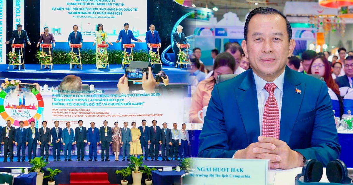 ទីក្រុងហូជីមិញ៖ តបតាមការអញ្ជើញពីភាគីវៀតណាម នាព្រឹកថ្ងៃទី៤ ខែកញ្ញា ឆ្នាំ២០២៥ ឯកឧត្តម ហួត ហាក់ រដ្ឋមន្ត្រីក្រសួងទេសចរណ៍ បានអញ្ជើញដឹកនាំគណៈប្រតិភូវិស័យទេសចរណ៍កម្ពុជា ចូលរួមក្នុងពិធីបើក និងកាត់ខ្សែបូរបើក អានបន្ត