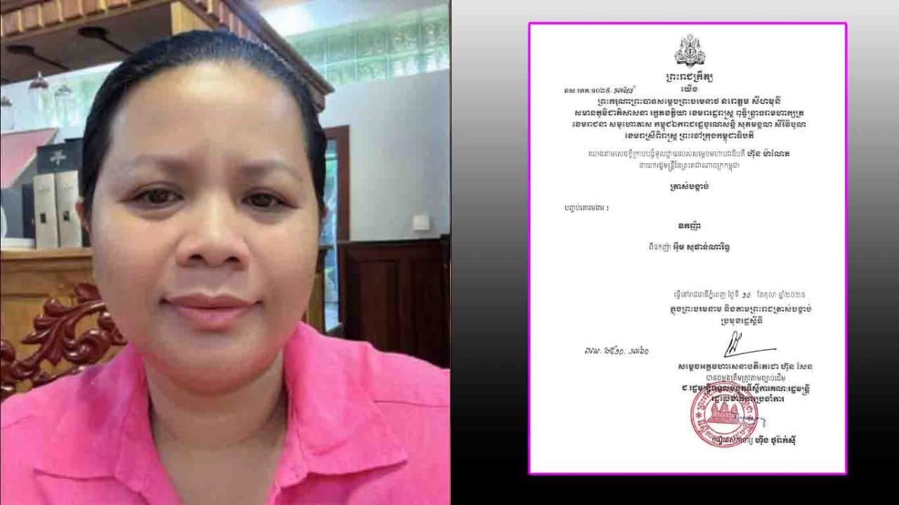 ប្រមុខរដ្ឋស្តីទី ចេញព្រះរាជក្រឹត្យត្រាស់បង្គាប់បញ្ចប់គោរមងារ ឧកញ៉ា ពីឧកញ៉ា អ៉ឹម សុផាន់ណា រឹទ្ធ ហៅចែ ទូច ថៅកែនាំសាច់បង្កកពីប្រទេសថៃ