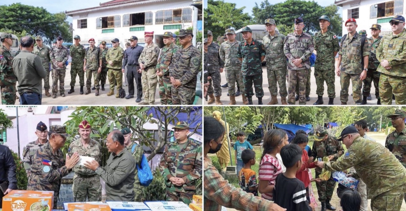 ក្រុមអនុព័ន្ធយោធាបរទេស ប្រចាំកម្ពុជាចុះទៅសួរសុខទុក្ខប្រជាជនស្លូតត្រង់កម្ពុជាដែលជាជនភៀសសឹក ស្នាក់នៅបណ្តោះអាសន្ននៅវត្តចាន់ស៊ីសាមគ្គីរតនារាម
