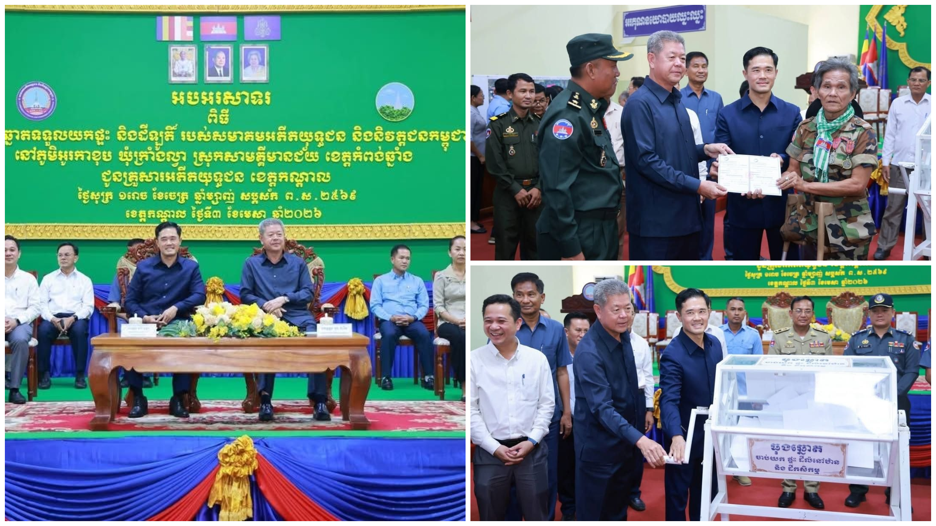 កណ្តាល៖ ក្នុងស្មារតីយកចិត្តទុកដាក់ខ្ពស់ចំពោះសុខទុក្ខ និងជីវភាពរស់នៅរបស់វីរយុទ្ធជនដែលបានលះបង់ដើម្បីបុព្វហេតុជាតិមាតុភូមិ, សមាគមអតីតយុទ្ធជនកម្ពុជា បានរៀបចំពិធីចាប់ឆ្នោតទទួលយកផ្ទះ និងដីឡូតិ៍ ជូនដល់អតីតយុ អានបន្ត