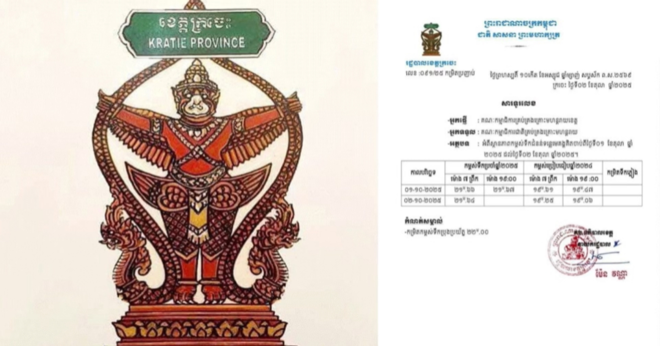 រដ្ឋបាលខេត្តក្រចេះ ជូនដំណឹងពីស្ថានភាពកម្ពស់ទឹកជំនន់ទន្លេមេគង្គគិតចាប់ពីថ្ងៃទី១-២ ខែតុលា