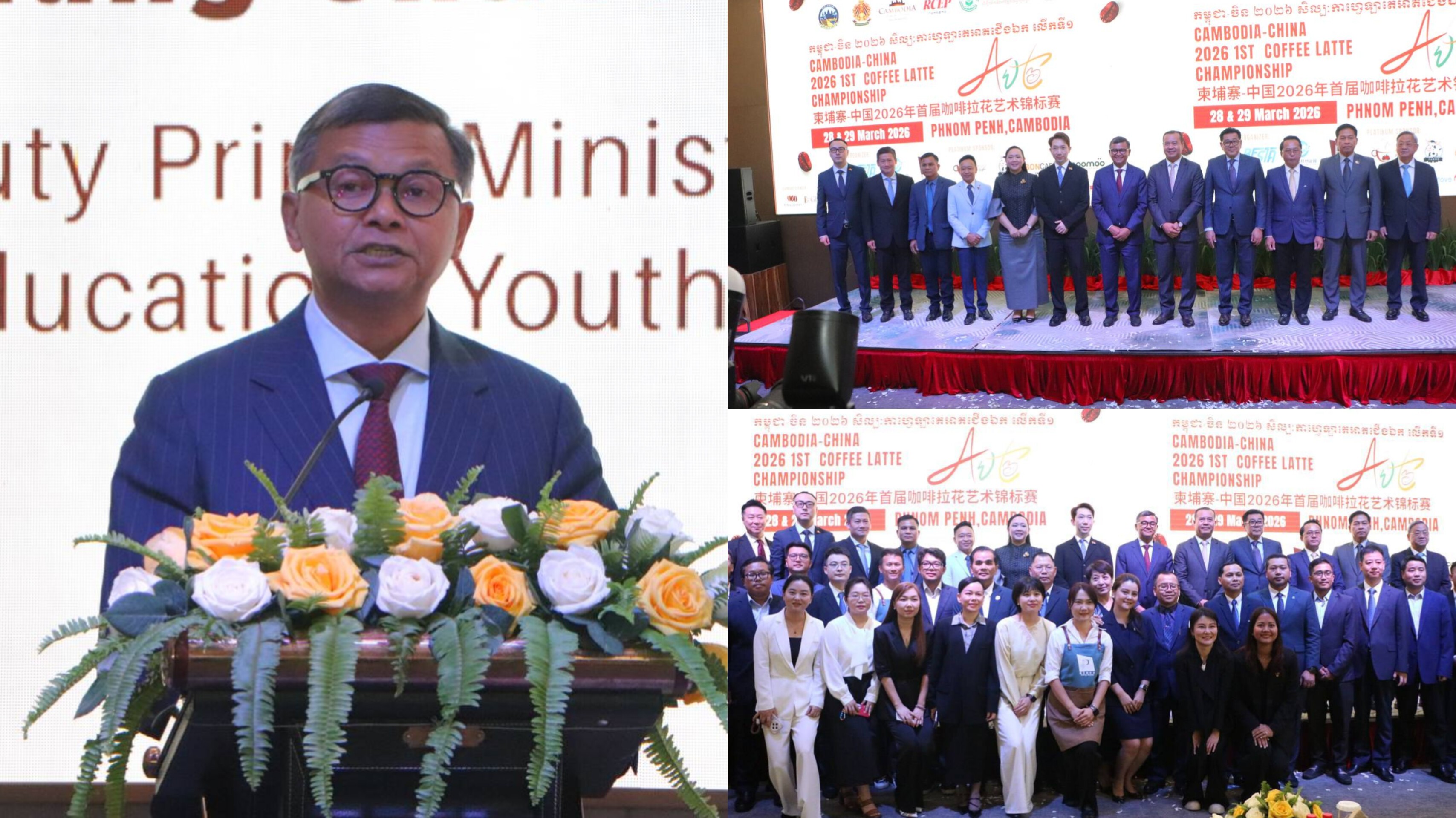 ភ្នំពេញ៖ លោកបណ្ឌិតសភាចារ្យ ហង់ជួន ណារ៉ុន ឧបនាយករដ្ឋមន្ត្រី រដ្ឋមន្រ្តីក្រួងអប់រំ យុវជន និងកីឡា នៅថ្ងៃទី២៨ ខែមីនាឆ្នាំ២០២៦ បានអញ្ជើញជាអធិបតីបើកកម្មវិធីប្រកួតជើងឯកសិល្បៈកាហ្វេឡាតេអាត កម្ពុជា-ចិន លើកទី១ អានបន្ត